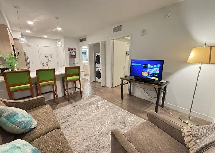 El establecimiento está situado a 2 km del centro en un barrio financiero, a tan solo 550 metros del Museo de Arte Contemporáneo de Los Ángeles. Este apartamento magnífico está a 25 minutos a pie del Estadio Dodger. La propiedad está situada a 6 minutos a pie del George's Greek Cafe con comida mediterránea. Los huéspedes se alojan no muy lejos de la Universidad del Sur de California. La parada de autobús el Metro está a 900 metros del apartamento Downtown Lights Apartment.